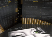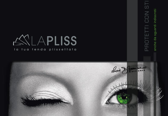 Studio proggettazione e realizzazione del logo La Pliss e DFM, realizzazione grafica del materiale pubblicitario e promozionale come: depliant, invito, espositore e listino.
