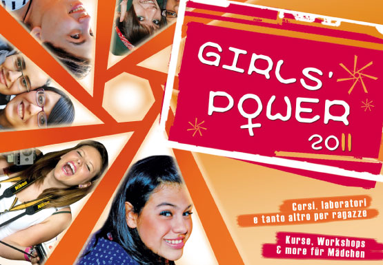 Studio progettazione e realizzazione del logo e del materiale promozionale come: locandina e depliant per il Girls' Power, corsi, laboratori e tanto altro per ragazze.